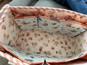 This is a more advanced rectangle shaped bag with many pockets, zippers, handles and bindings. Each student MUST purchase the Catch All Caddy 2.0 pattern either on line or at a local quilt store price around $15.00. A kit for the hardware and strapping can be purchased from me for $4.00 while supplies last. choice of nickel, gold or gunmetal gray hardware. Strapping is white but you will be covering it. Zippers are optional. Meet with me prior to purchasing your fabric to help you design your bag. Quilting homework will be assigned at the end of the first class to be done by beginning of second class.