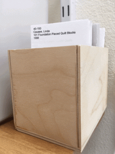 The sewing room maintains an extensive library with a collection of books on sewing and/or general quilting techniques available for check out.